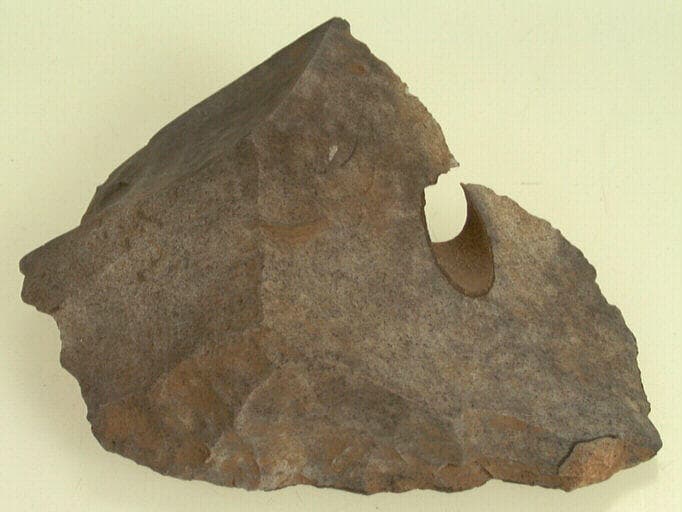 silex gris. ; Racloir sur éclat d'avivage chauffé.