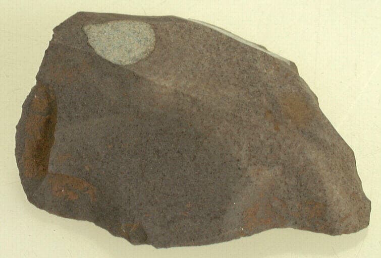 silex gris. ; Grattoir à museau à un côté plat et un côté convexe.