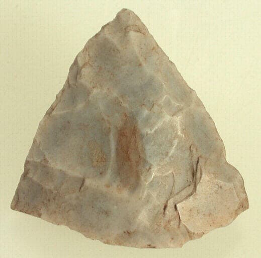 silex blanc ; Pointe de feuille de laurier aux bords et aux flancs réguliers.