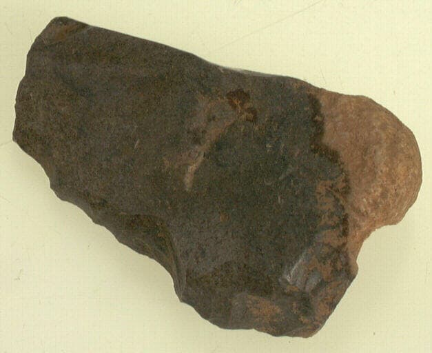 grès lustré. ; Lame de grès lustré retouchée avec présence du cortex.