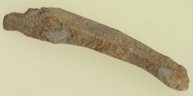 silex gris. ; Chute de burin à un côté plat et un côté convexe.