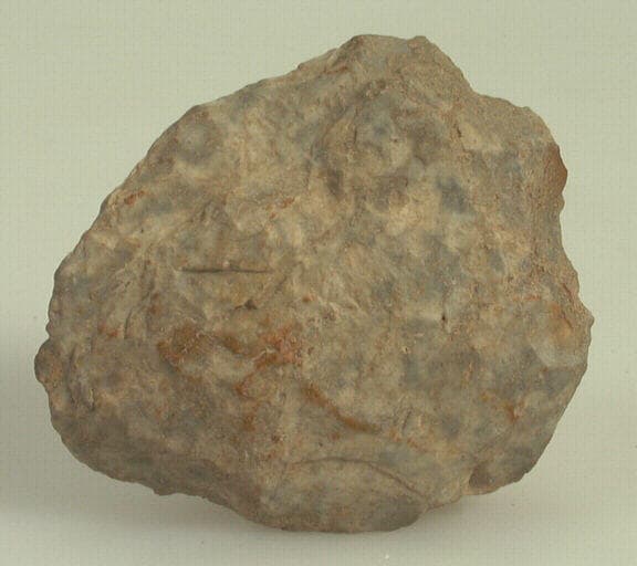 grès lustré. Il était recherché par les hommes préhistoriques, sans doute en remplacement du silex peu accessible à cette période et dont il possède les mêmes qualités clastiques. ; Racloir déjeté sur éclat à talon lisse; retouches bifaciales.