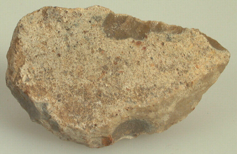 grès lustré. Il était recherché par les hommes préhistoriques, sans doute en remplacement du silex peu accessible à cette période et dont il possède les mêmes qualités clastiques. ; Racloir convergent sur débris.