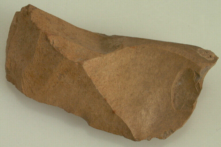 silex jaune ; Eclat de silex au talon retouché convexe.