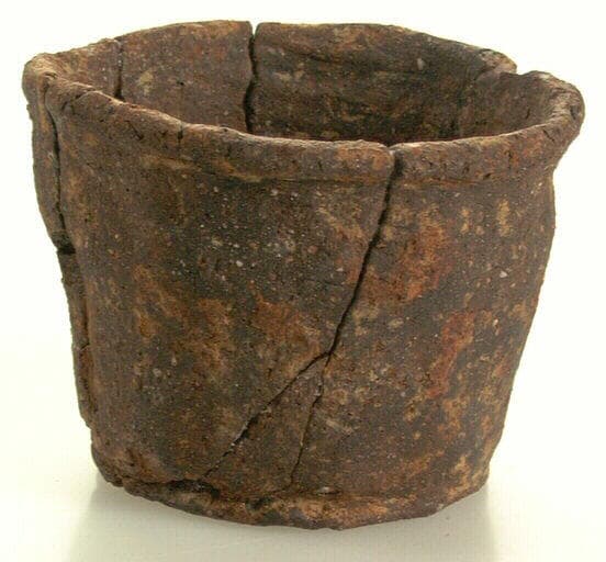 La lèvre est arrondie et forme un bourrelet. Le col se rétrécit légèrement, la panse est droite et le fond est plat avec un bourrelet d'assise.