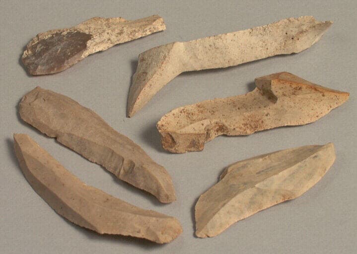 silex blanc ; Lames de silex à trois pans.