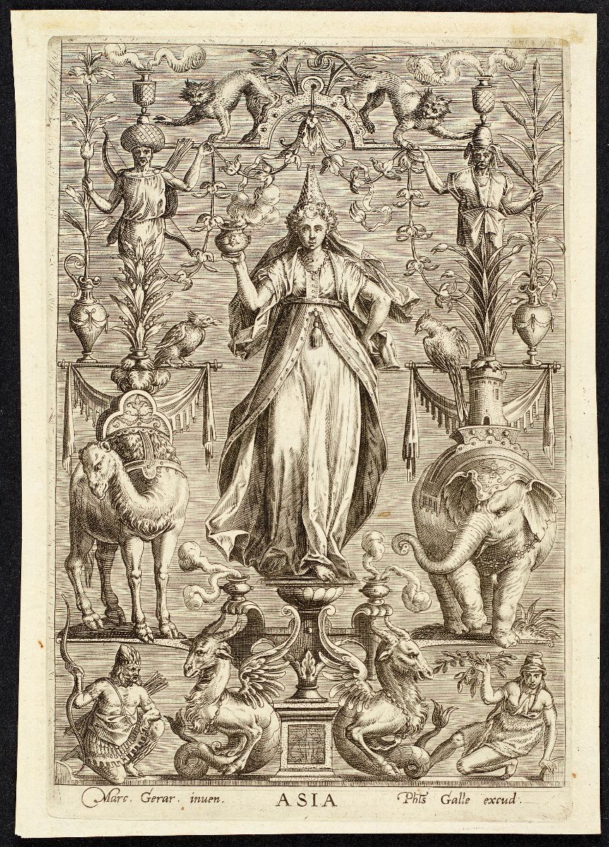 Signé Titre : Marc. Gerar. inuen. / ASIA / Phls Galle excud. (transcription) ; b.c.