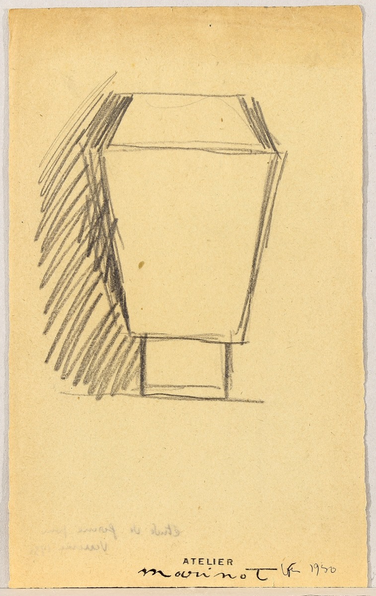 Sur l'objet : au verso, en bas à droite. ; En bas au centre : Encre noire et stylo noir., ATELIER marinot 1930 ; Au verso : Stylo noir., étude de forme pour verrerie.