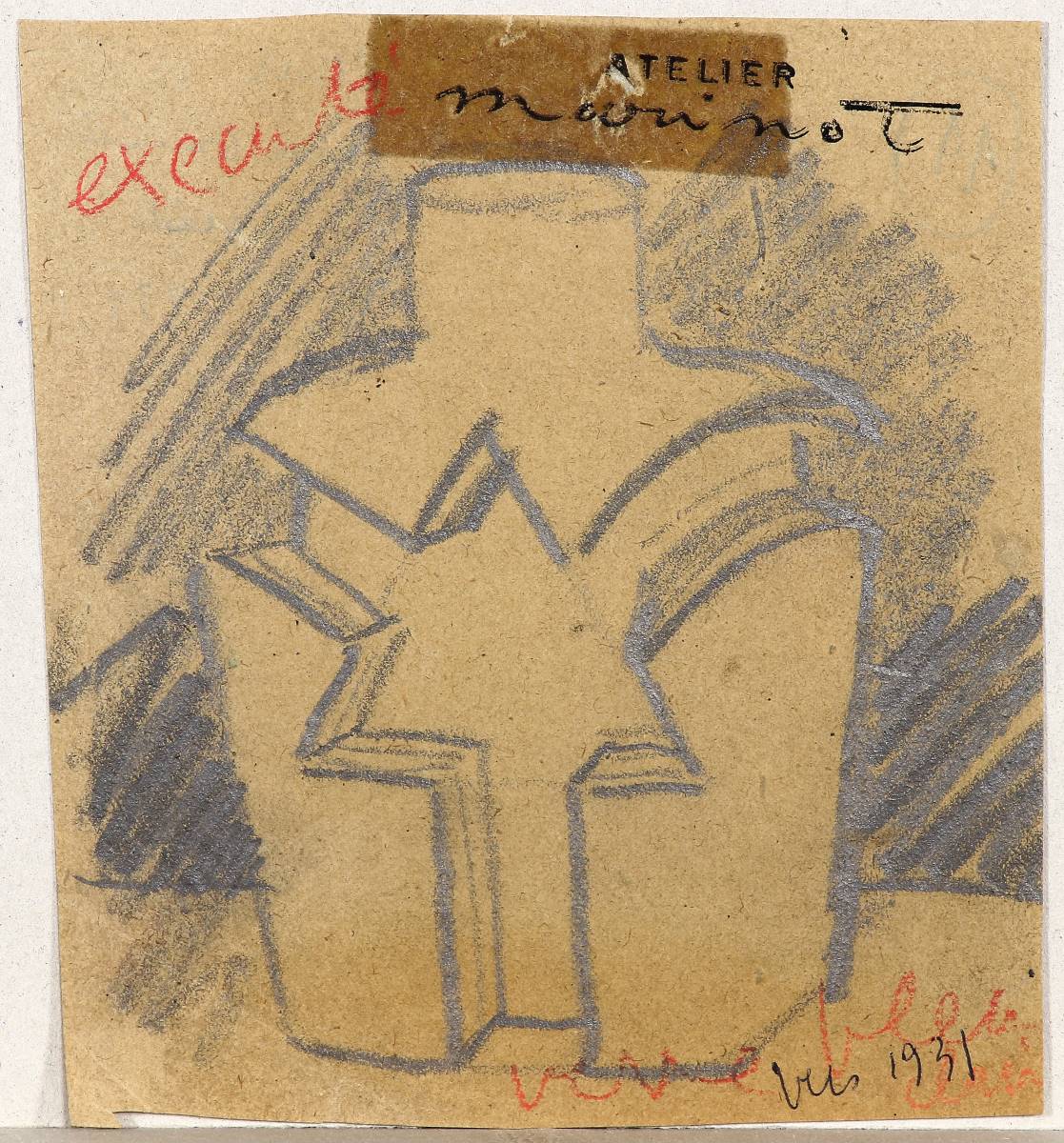Sur l'objet : au verso. ; Au recto : executé atelier marinot verre bleu clair vers 1931 ; 11 étude de vase gravé à l'acide 1931