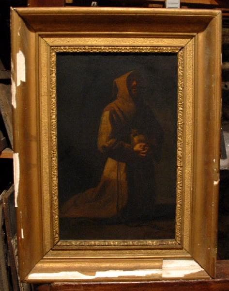 Très répandu chez les romantiques, le thème du moine devient un motif à la mode. Il correspond à une volonté d'exprimer la recherche de l'absolu par le renoncement aux futilités du monde. Colin recourt à des ombres fondues qui modèlent la physionomie du saint avec plus de douceur, laissant apparaître les traits du visage et notamment, les yeux.