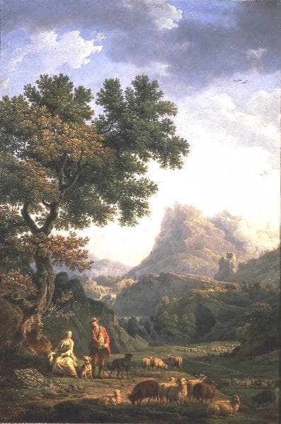 Commandé par Madame Geoffrin qui tenait un salon littéraire à Paris, représente un sujet tiré des Contes moraux de Marmontel (1761). Salon de 1763. Saisie révolutionnaire. Château de Saint-Cloud. Déposé en 1874 à Compiègne, puis à Tours en 1956. Réplique signée et datée de la même année par J. Vernet au musée d'Avignon, commande du prince Galitzine, ambassadeur de Catherine II.