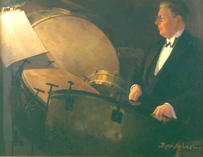 Cette oeuvre valut à René Aubert le prix Victor-Noury en 1929 et s'inscrit dans la tradition académique de son maître Lucien Simon, mais le réalisme du timbalier et surtout la 'nature morte' en camaïeu brun des quatre timbales, démontrent ses qualités plastiques et d'observation