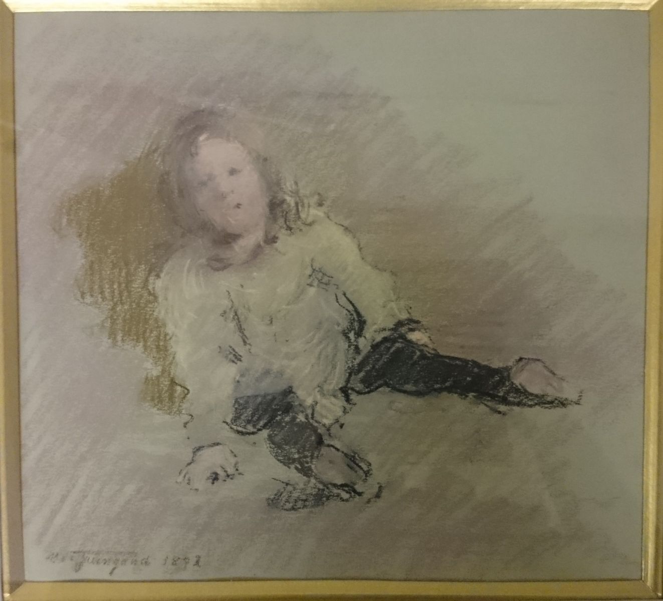 "M de Guingand 1892" (recto, en bas à gauche) ; "Portrait de Gilbert de Guingand enfant / par son père 1892" (Au dos, en bas à gauche)