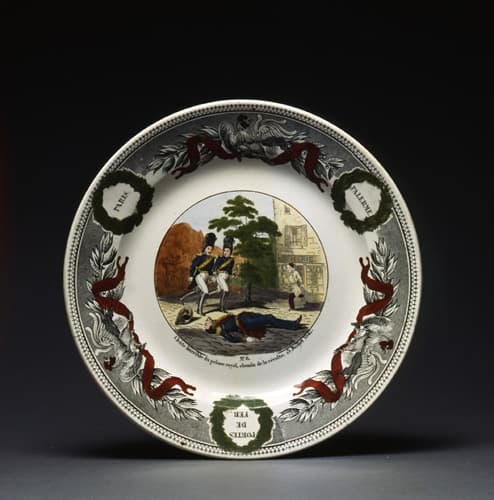voir aussi : Assiette : Duc d'Orléans enfant Palerme 1814 (59.9.4), Assiette : Duc d'Orléans au collège Henry IV 1816 (59.9.5), Assiette : Duc d'Orléans prince royal artilleur, 29 août 1830 (59.9.6), Assiette : F.P. duc d'Orléans prince royal pacifiant l'insurrection Lyonnaise (59.9.7), Assiette : Duc d'Orléans prince royal devant la citadelle d'Anvers 1832 (59.9.8) Elément de la série, Assiette : Duc d'Orléans mariage à fontainebleau le 30 mai 1837 (59.9.9) Elément de la série, Assiette : Le duc aux Portes de Fer. Afrique 1839 (59.9.10) Elément de la série, Assiette : Translation du corps du prince royal à la chapelle du château (59.9.12), Assiette : Char funèbre transportant le corps du prince royal (59.9.13), Assiette : Le corps du Prince est déposé dans la chapelle ardente à Dreux (59.9.14), Assiette : F.P. duc d'Orléans Prince royal (59.9.15)