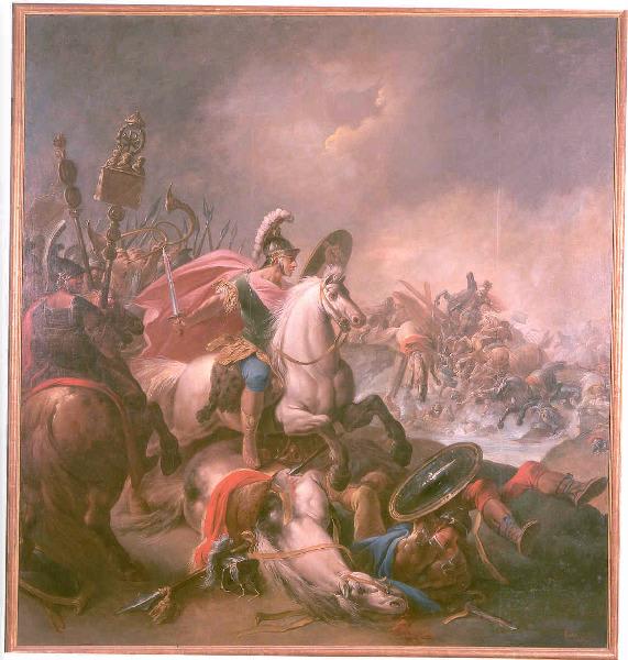 scène historique (Constantin Ier, bataille, Antiquité, soldat, cavalier, armée, cadavre, cheval)