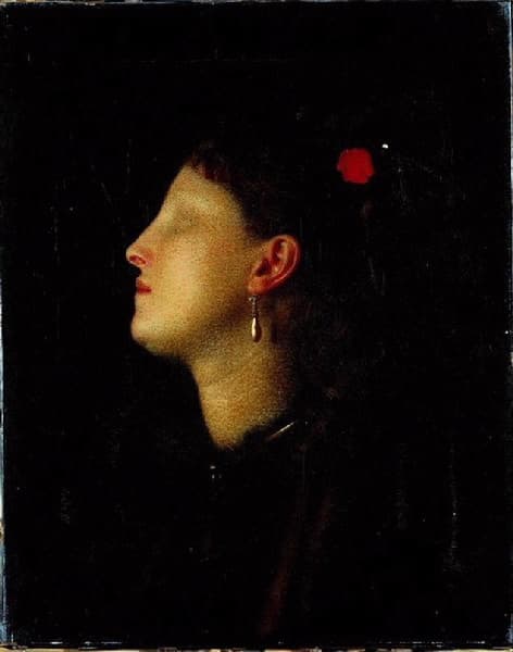 Prix de Rome en 1857, Sellier divise très tôt la critique. Roger Marx souligne dans le texte qui accompagne la rétrospective de son oeuvre : "le tempérament de Sellier était en tout point opposé aux tendances du goût actuel [...]. Autant ils aiment le plein air et la vive lumière ; autant Sellier recherchait le clair-obscur et la pénombre. Ils estiment que l'on doit trouver dans la réalité les sujets de tous les tableaux, et qu'il n'est rien besoin de chercher au-delà, tandis que c'est surtout cet au-delà qui inquiétait et qui troublait Sellier". -Il est possible que cette oeuvre ait été conçue à l'origine comme une étude préparatoire, plus tard réemployée, pour le "Souvenir italien" acheté par l'Etat au Salon de 1869 ; Dépôt Corbin, 1966 Non signé