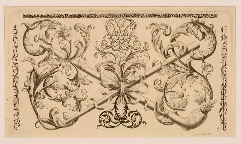Rinceaux agrémentés par deux pipes