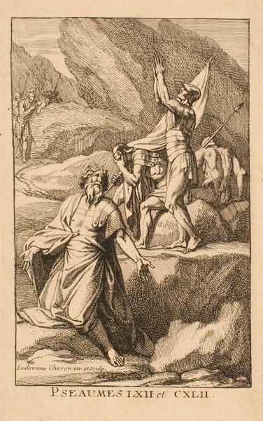 lettre, en bas à gauche : Ludovicus Cheron inv. et sculp ; lettre, sous le trait carré : PSEAUMES LXII et CXLII