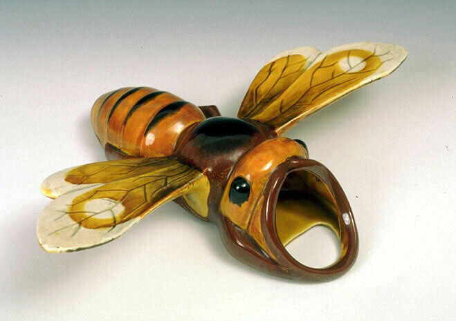 Deux vases d'applique murale en forme de guêpes, en majolique