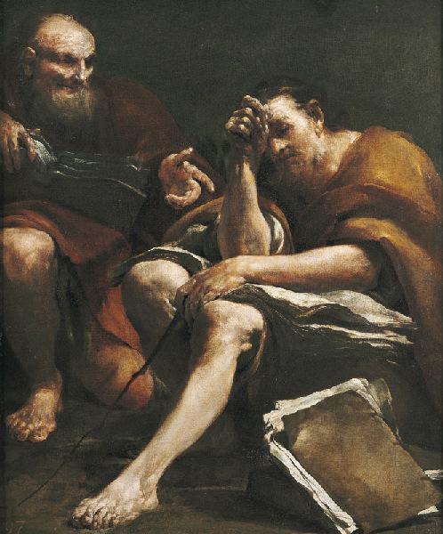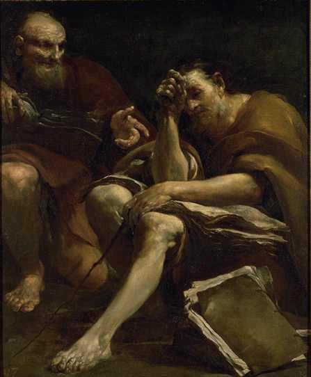 scène (Démocrite, Héraclite, lecture, réflexion, discussion, livre, philosophe : Grec)