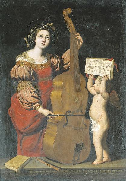 figure (sainte Cécile de Rome, violoncelle, ange)