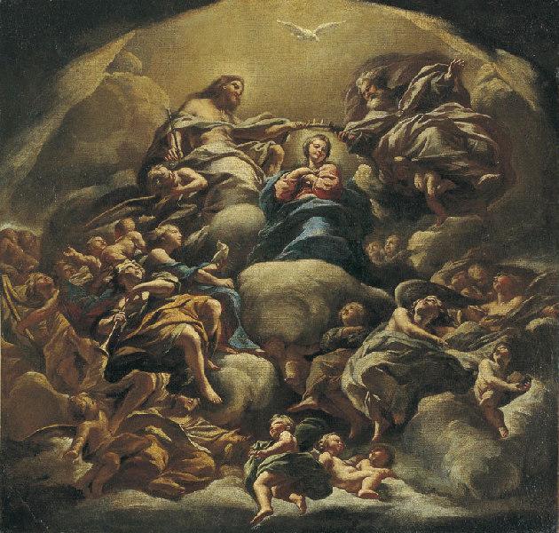 scène biblique (Couronnement de la Vierge, Trinité, ange, nuée)