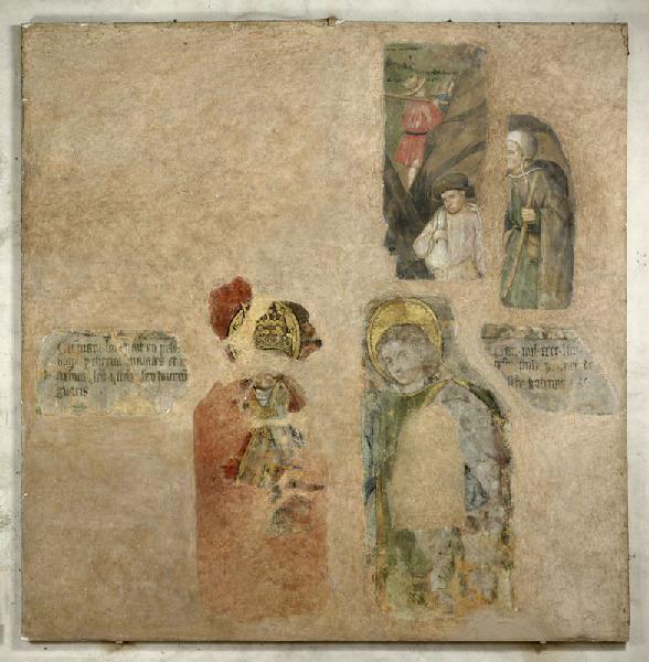 décor d'architecture provenant de l'église Notre-Dame de la Dalbade de Toulouse ; voir aussi : Pèlerinage au tombeau de sainte Catherine, inscription datée (55 2 1 1), Pèlerinage au tombeau de sainte Catherine, un pèlerin (55 2 1 2), Pèlerinage au tombeau de sainte Catherine, un pèlerin (55 2 1 3), Pèlerinage au tombeau de sainte Catherine, deux pèlerins (55 2 1 4), Pèlerinage au tombeau de sainte Catherine, un pape tenant un livre ouvert (55 2 1 5), Pèlerinage au tombeau de sainte Catherine, motifs décoratifs et fleurs stylisées (55 2 1 6)