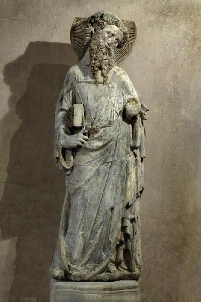 Ancienne chapelle fondée par Jean Tissendier, évêque de Rieux-Volvestre (1324-1348), au nord-est de l'église du couvent des Cordeliers, derrière l'abside ; voir aussi : Jean Tissendier, évêque de Rieux-Volvestre (1324-1348) figuré en donateur de la chapelle dite de Rieux (RA 552) , Gisant de Jean Tissendier, évêque de Rieux-Volvestre (1324-1348) (RA 560) , Lion couché (RA 560 BIS) , Saint François d'Assise (RA 555 A) , Saint Antoine de Padoue (RA 555 B) , Saint Paul (RA 555 C) , Saint Louis de Toulouse (RA 555 D) , Apôtre (RA 555 F) , Apôtre (RA 555 G) , Saint Jean-Baptiste (RA 555 H) , Saint Jacques le Majeur (RA 555 I) , Saint Jean l'Evangéliste (RA 555 J) , Apôtre (RA 555 K) , Apôtre (RA 555 L) , Saint Pierre (RA 555 M) , Saint Jacques le Mineur ? (RA 555 N) , Apôtre (RA 555 O) ; en rapport avec : La Vierge, Le Christ ; Numéros d'inventaire des autres éléments conservés au musée des Augustins : RA 552, RA 560, RA 560 bis, RA 555 A-RA 555 D, RA 555 F-RA 555 O