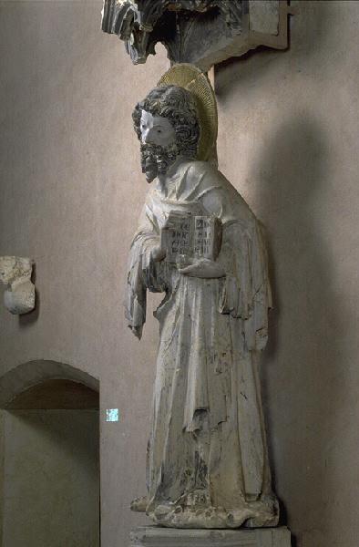 Ancienne chapelle fondée par Jean Tissendier, évêque de Rieux-Volvestre (1324-1348), au nord-est de l'église du couvent des Cordeliers, derrière l'abside ; voir aussi : Jean Tissendier, évêque de Rieux-Volvestre (1324-1348) figuré en donateur de la chapelle dite de Rieux (RA 552) , Gisant de Jean Tissendier, évêque de Rieux-Volvestre (1324-1348) (RA 560) , Lion couché (RA 560 BIS) , Saint François d'Assise (RA 555 A) , Saint Antoine de Padoue (RA 555 B) , Saint Paul (RA 555 C) , Saint Louis de Toulouse (RA 555 D) , Apôtre (RA 555 E) , Apôtre (RA 555 F) , Saint Jean-Baptiste (RA 555 H) , Saint Jacques le Majeur (RA 555 I) , Saint Jean l'Evangéliste (RA 555 J) , Apôtre (RA 555 K) , Apôtre (RA 555 L) , Saint Pierre (RA 555 M) , Saint Jacques le Mineur ? (RA 555 N) , Apôtre (RA 555 O) ; en rapport avec : La Vierge, Le Christ ; Numéros d'inventaire des autres éléments conservés au musée des Augustins : RA 552, RA 560, RA 560 bis, RA 555 A-RA 555 F, RA 555 H-RA 555 O.