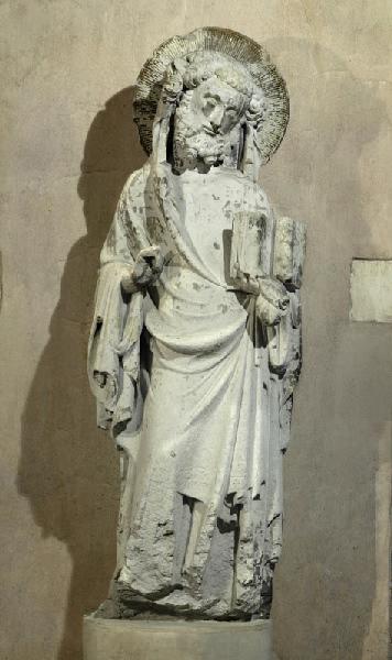 Ancienne chapelle fondée par Jean Tissendier, évêque de Rieux-Volvestre (1324-1348), au nord-est de l'église du couvent des Cordeliers, derrière l'abside. voir aussi : Jean Tissendier, évêque de Rieux-Volvestre (1324-1348) figuré en donateur de la chapelle dite de Rieux (RA 552) , Gisant de Jean Tissendier, évêque de Rieux-Volvestre (1324-1348) (RA 560) , Lion couché (RA 560 BIS) , Saint François d'Assise (RA 555 A) , Saint Antoine de Padoue (RA 555 B) , Saint Paul (RA 555 C) , Saint Louis de Toulouse (RA 555 D) , Apôtre (RA 555 E) , Apôtre (RA 555 F) , Apôtre (RA 555 G) , Saint Jean-Baptiste (RA 555 H) , Saint Jacques le Majeur (RA 555 I) , Saint Jean l'Evangéliste (RA 555 J) , Apôtre (RA 555 L) , Saint Pierre (RA 555 M) , Saint Jacques le Mineur ? (RA 555 N) , Apôtre (RA 555 O) ; en rapport avec : La Vierge, Le Christ ; Numéros d'inventaire des autres éléments conservés au musée des Augustins : RA 552, RA 560, RA 560 bis, RA 555 A-RA 555 J, RA 555 L-RA 555 O.