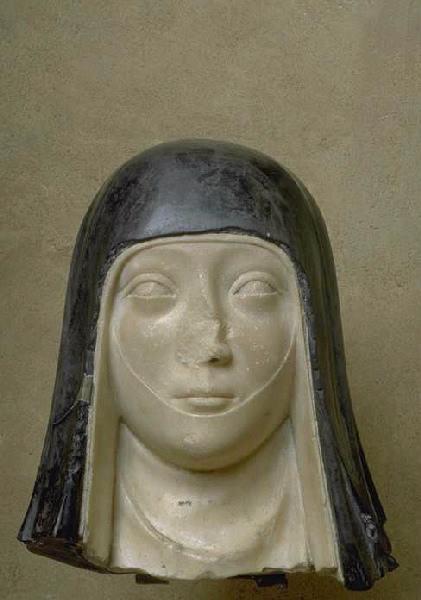 Tête féminine acquise en 1844 à la demande d'Alexandre Du Mège par la Société d'Archéologie du midi de la France qui en fit don au musée. Les éléments du costume et l'utilisation du marbre blanc et noir suggère les éléments de la coiffe d'une religieuse. Cette sculpture peut être rapprochée de la statue de Marie de Bourbon, prieure des dominicaines de Saint-Louis de Poissy, conservée au musée du Louvre.