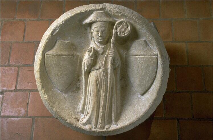 provient de l'église du couvent des Cordeliers à Toulouse ; voir aussi : Clef de voûte ornée d'un évêque (RA 550 B) , Clef de voûte ornée de Saint François d'Assise (RA 550 E) , Clef de voûte ornée du Christ (RA 550 D) , Clef de voûte ornée de la Vierge à l'Enfant (RA 550 F)