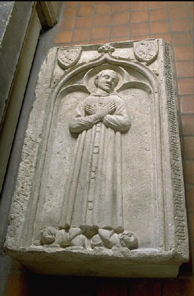 Dalle funéraire de Jean Molinier (Changeur toulousain mort après 1413. Titre cartel 2007.) ; Dalle funéraire à bas-relief de Jean Molinier, changeur toulousain (Ancien titre )