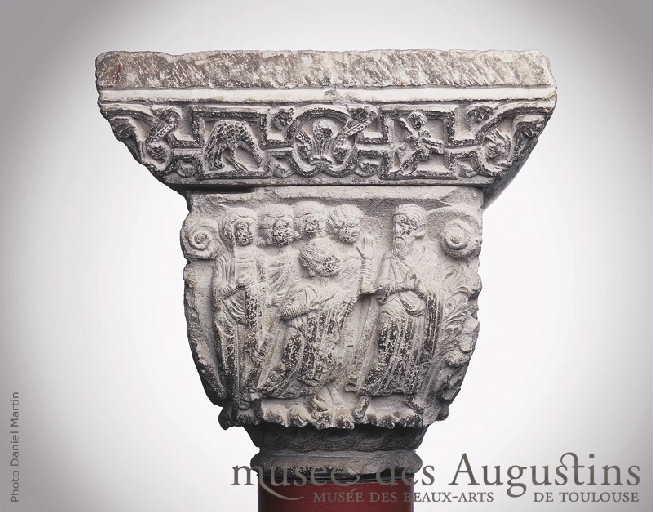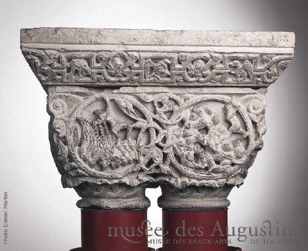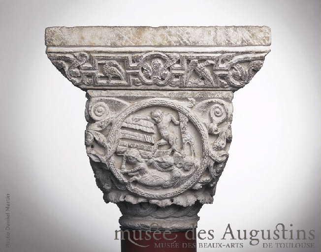 Provient du prieuré de Sainte-Marie-de-la-Daurade ; voir aussi : Histoire de Job (ME 51) , Palmettes en fleurons, Animaux dans des médaillons carrés (ME 181) numéro d'inventaire de l'autre élément