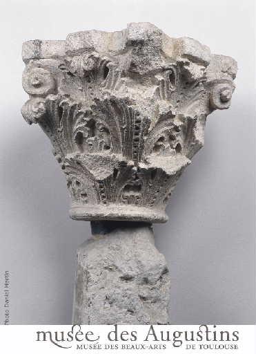 provient du portail de la salle capitulaire du prieuré de Sainte-Marie-de-la-Daurade, démoli en 1811, 1812 ; voir aussi : Prophète (ME 77) Exposé ensemble - Salle romane, 1996, base d'angle (ME 87) Exposé ensemble - Salle romane, 1996