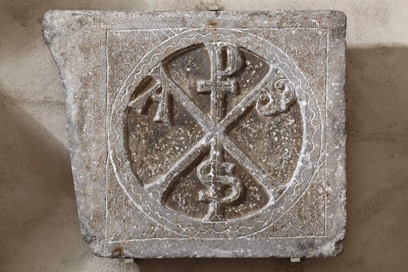 figure biblique (Chrisme, Alpha et Oméga, en médaillon, quadrillé)