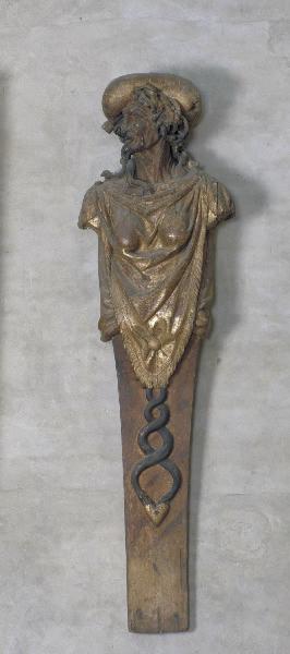 figure (allégorie : envie, serpent, femme : vieille, en buste, à mi-corps, draperie, effet de tissu, cheveux, coussin) ; coeur orn