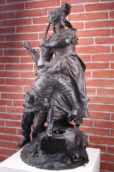 scène (groupe, femme, Alsacien, héroïsme, fusil, soldat, blessé)