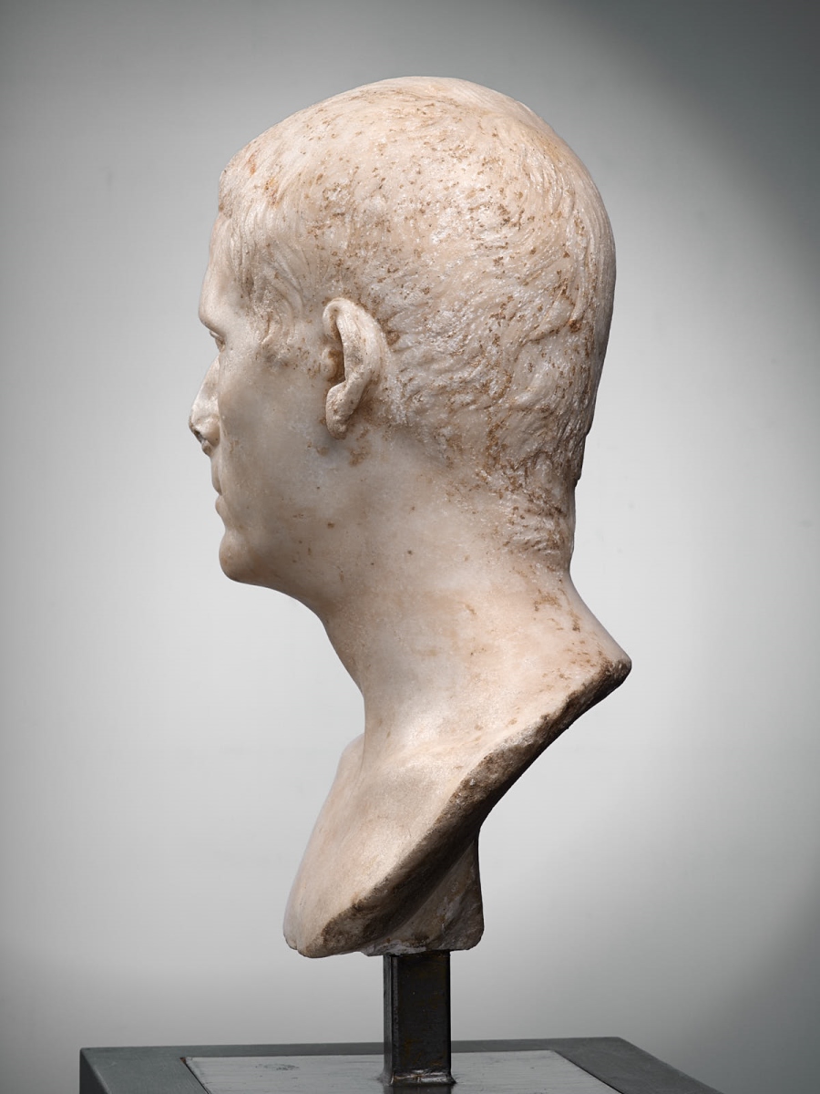 Autrefois dit de Jules César, ce portrait est conçu selon des principes caractéristiques de l'ancienne République romaine : réalisme, austérité et gravité. Créé dans les dernières années du règne d’Auguste ou les premières années de celui de Tibère, cette image révèle un personnage encore attaché aux valeurs traditionnelles. Pascal Capus, 2015