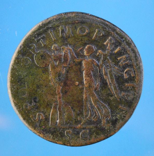 La simple coiffure « au bol » de Trajan (dynastie antonine) retranscrit bien l'ambiance virile des camps militaires, en Germanie ou en Dacie (Roumanie), où l'empereur a passé la majorité de sa vie. Cette coupe de cheveux rappelle aussi l'austérité de l'époque républicaine. Devant le buste, la cuirasse représentée est l'égide, offerte à Minerve par Jupiter. Associée au portrait depuis Alexandre le Grand, elle rappelle le lien entre le plus grand des dieux (Jupiter) et le monarque. Trajan domine donc l'univers à l'image de cette divinité majeure. Au revers : « Le Sénat et le peuple romain (S.P.Q.R.) au milieu des princes (OPTIMO PRINCIPI) ». Optimus implique un respect religieux envers le souverain. Trajan est élevé au-dessus des hommes et investi d'une fonction supra-naturelle. Texte : Pascal Capus et Marie-Laure Le Brazidec, 2016
