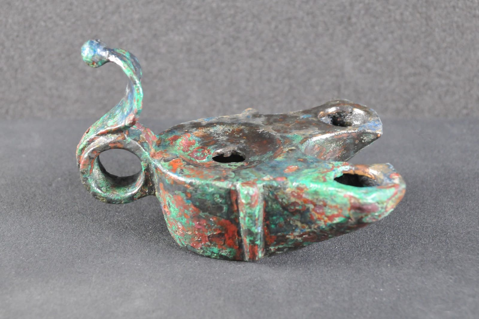 Lampe à huile à deux becs en enclume