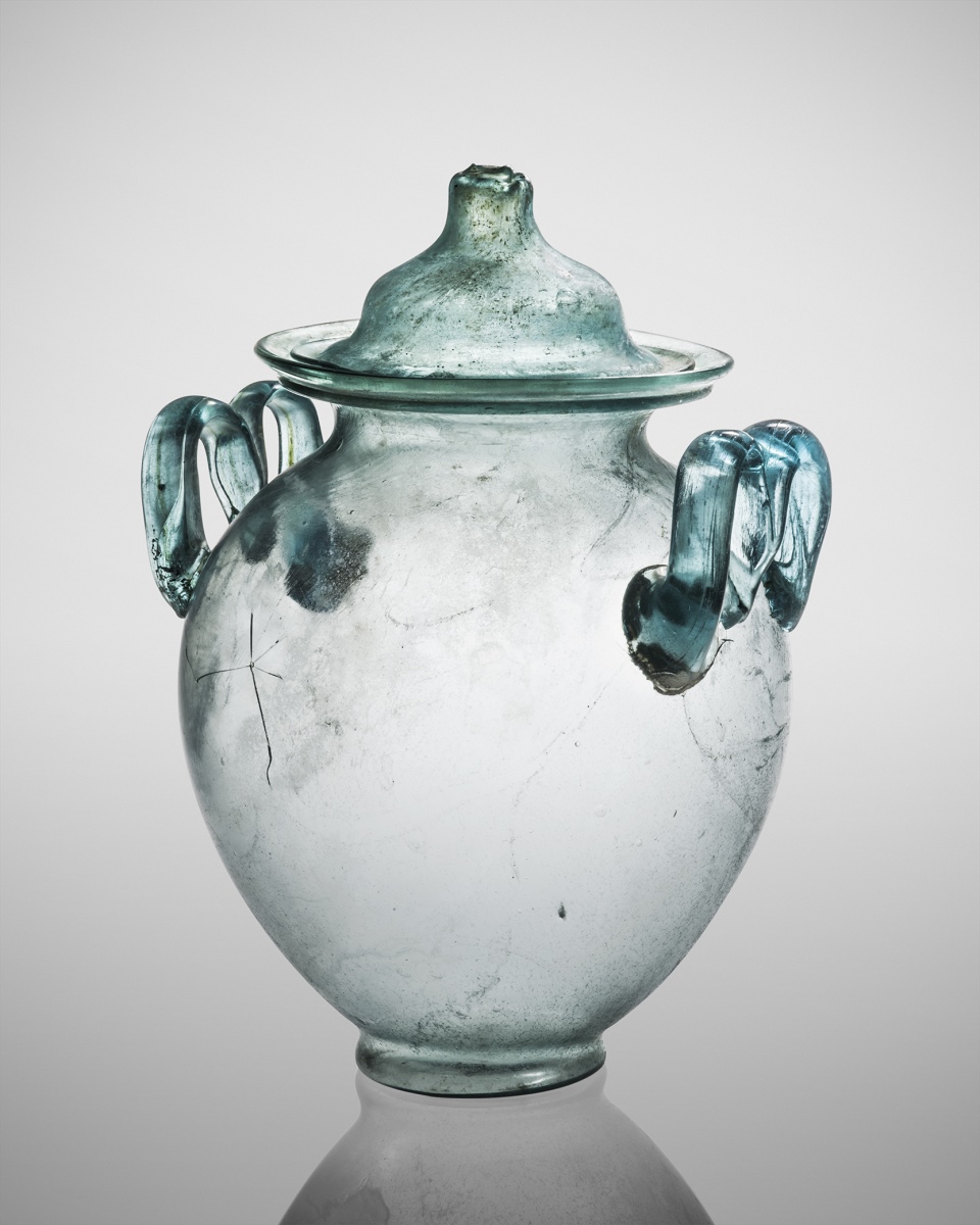 Morin (Jean), La verrerie en Gaule sous l'empire romain, Paris, Société de la propagation des livres d'art, 1922-1923, (p. 43-44. Pour qui ces couvercles (operculae) sont des imitations de couvercles de poteries grecques. Il ne juge pas nécessaire d'en faire une typologie (bibl. de comp.))