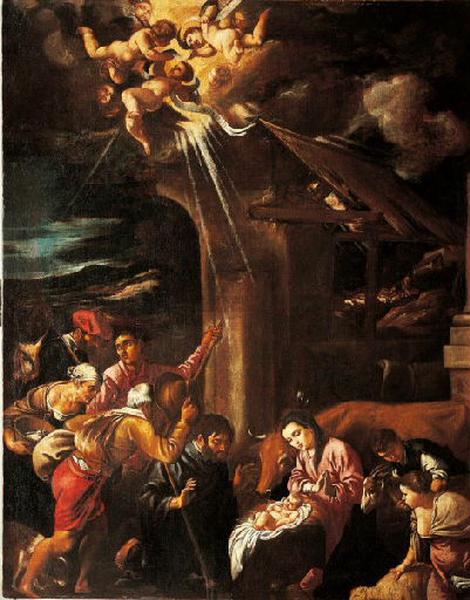 La Vierge est inclinée sur l'enfant Jésus, sur la droite un groupe de bergers venu saluer l'arrivée du Messie. Au second plan, l'étable se dresse et fait la jonction avec le groupe d'angelots qui éclaire la scène depuis la partie supérieure du tableau. Sur la gauche, une trouée laisse apercevoir un paysage sombre donnant de la profondeur à l'oeuvre. Orrente développe ici son goût pour les compositions pastorales. Son style personnel demeure très marqué par le réalisme et le ténébrisme. Le naturel des expressions ainsi que des attitudes s'inspire de Véronèse et de Tintoret parmi des contrastes lumineux très marqués.