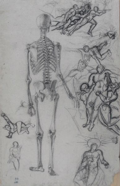 Squelette de dos (verso avec croquis de personnages)