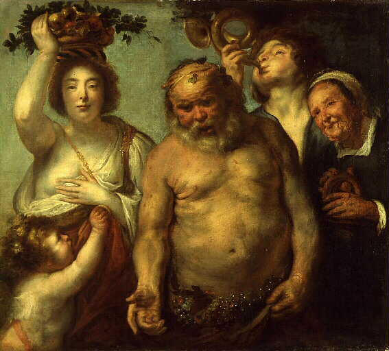 Oeuvre réalisée dans l'atelier de Jordaens assez tardivement (après 1640). On reconnaît la main de Jordaens dans le sonneur de trompe et la vieille femme ; les autres figures sont probablement dues à des collaborateurs. ; L'histoire du tableau avant son entrée dans la collection Lacaze est mal établie. Est-ce bien le même exemplaire qui, ayant fait partie des collections Caylus et Poullain en 1780 figura à la vente Randon de Boisset ?