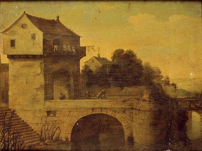 Pont défendu par une porte fortifiée