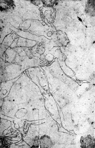 Couple nu faisant l'amour ; au verso : Homme nu emportant une femme nue à mi-corps