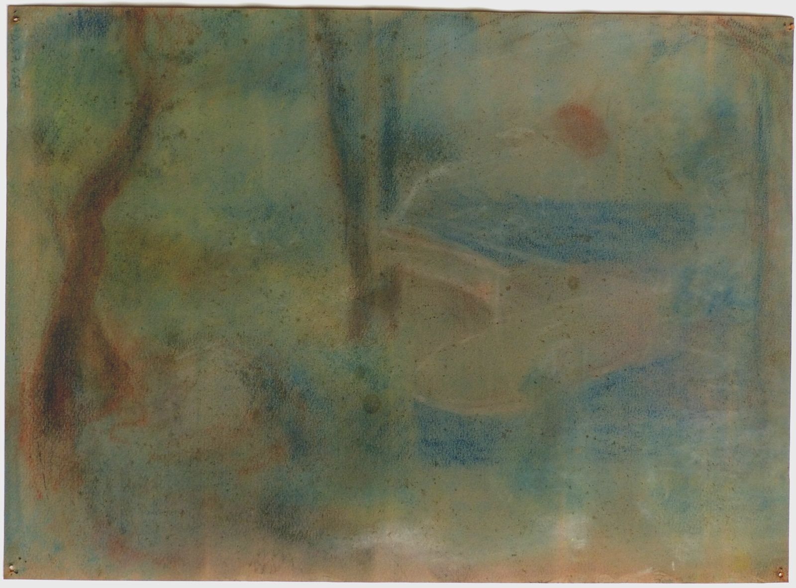 Tête de Christ de face. Au revers, une esquisse pour un coucher de soleil en bord de mer.