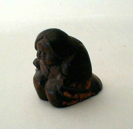 Netsuké en bois représentant Okame à genoux