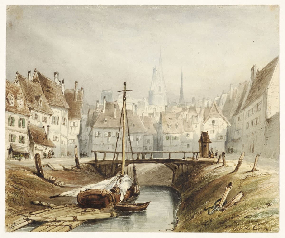 voir aussi la lithographie tirée d'après ce dessin : Vue de Caen (inv. 74.3.1)